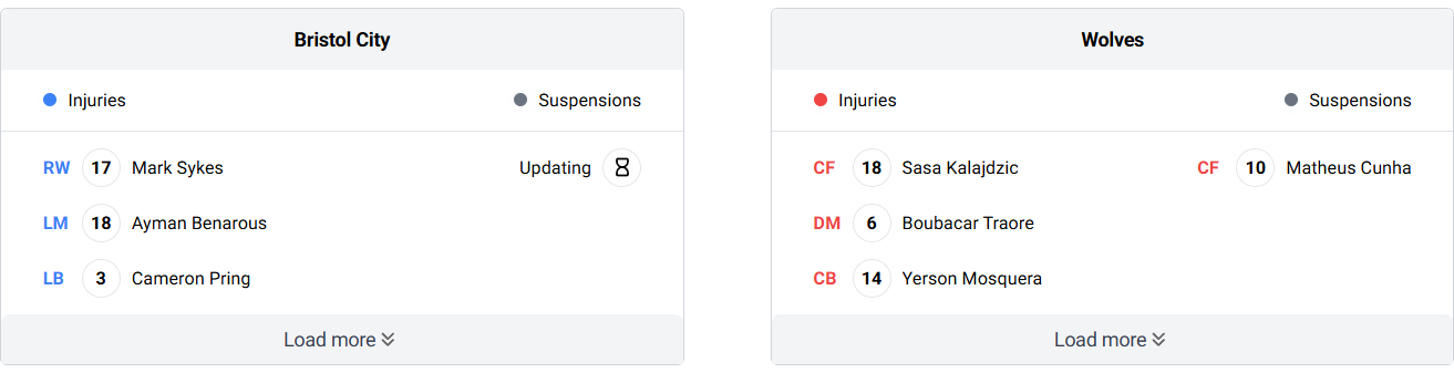Possible Lineups for Bristol City vs Wolves