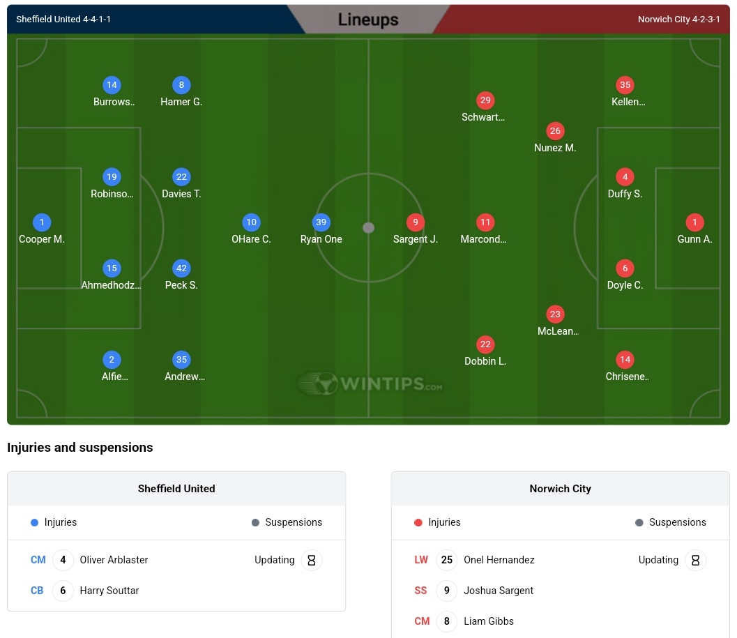 Predicted Lineups for Sheffield United vs Norwich City match