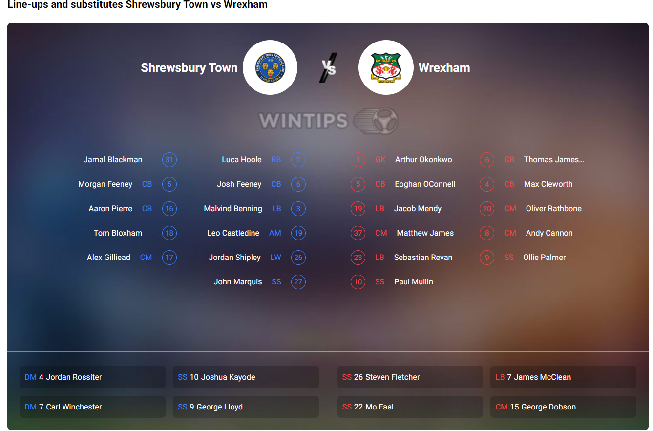 Lineups for Shrewsbury Town vs Wrexham match